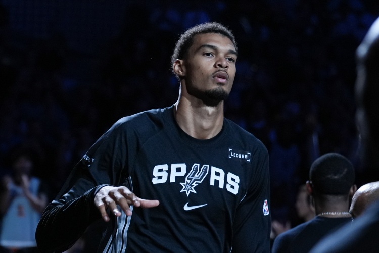直播吧10月31日讯 NBA常规赛,马刺107-101战胜热火。此役,文班亚马出战40分钟,投篮23中10,三分球5中1,罚球8中6,砍下27分18篮板6助攻1