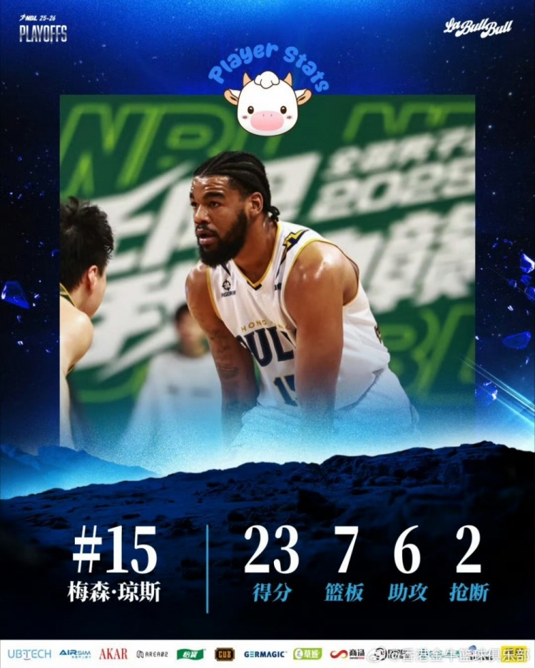 香港金牛在半决赛对阵江西鲸裕清酒的首场比赛中旗开得胜,四名外援均得分上双,表现亮眼。琼斯连突带投,砍下全队最高的23分7篮板6助攻;所