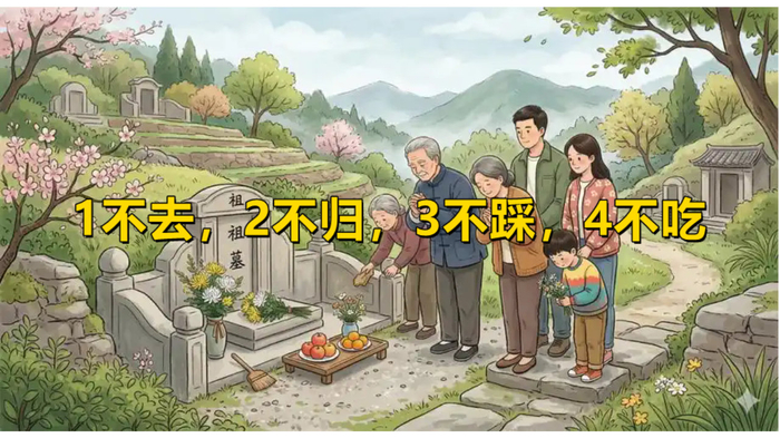不知不觉,看4月5号清明就要到了,关于清明节,在民间流传着这么一句话,大家一定要牢记:“1不去,2不归,3不踩,4不吃”。这句话听着像是