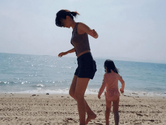卢靖姗晒母子三人海边照,二胎产后3个月状态好
