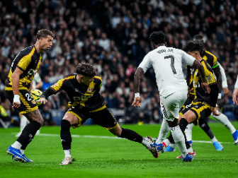 网易体育2月1日报道:北京时间2月1日晚21点,西甲联赛第22轮,皇家马德里坐镇主场伯纳乌球场迎战巴列卡诺。开场不到10分钟,贝林厄姆肌肉拉
